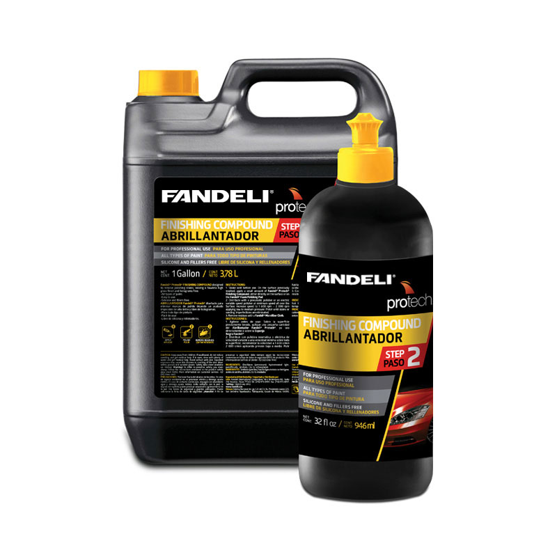 - Abrillantador FANDELI® Protech® diseñado para eliminar marcas de pulido dejando un acabado impecable de alto brillo y libre de hologramas.